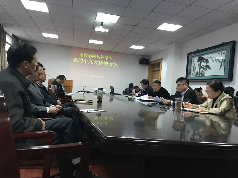 为了切实抓好学习贯彻党的十九大精神,进一步掀起学习宣传热潮。11月3日下午,国旅学院在院三楼会议室组织全体教职工集中开展党的十九大精神学习活动。