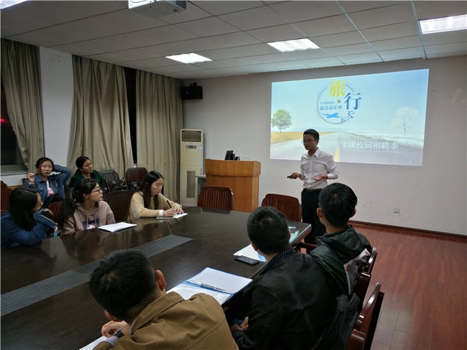本网讯(国旅学院 叶云)11月15日晚,国旅学院“职海扬帆”系列招聘之祥源控股集团专场招聘会于行政楼三楼会议室举办。祥源控股集团人力资源经理李伟亲自来365官网组织宣讲,20余位毕业班学生参加此次招聘会。