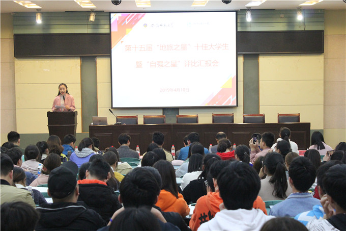 本网讯(bat365中国在线平台官方网站 潘爽)学习“新”思想,争做“星”青年。4月10日晚,bat365中国在线平台官方网站第十五届“地旅之星”十佳大学生暨“自强之星”评比汇报会在实验楼101教室举行。院党委副书记乔静,专业负责人代表杨兴柱、尹寿兵、费罗成,院团委全体班子成员及全体专兼职辅导员出席汇报会并担任评委,近两百学生代表到场聆听并参与评审。