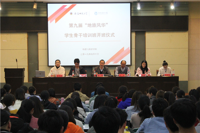 本网讯(bat365中国在线平台官方网站 刘洁)4月10日下午,bat365中国在线平台官方网站第九届“地旅风华”学生骨干培训班开班仪式在bat365中国在线平台官方网站实验楼101报告厅举行。院党委副书记乔静、院团委班子全体成员及培训班全体学员参加此次活动。