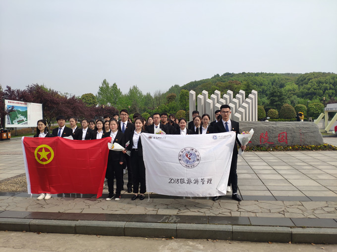 本网讯(bat365中国在线平台官方网站 陈祥云、汪海洋)为深入学习贯彻习近平新时代中国特色社会主义思想和党的十九大精神,纪念五四运动100周年,激励和引领广大团员青年大力弘扬五四精神,2019年4月13日上午,在院团委的大力支持下,2018级旅游管理团支部开展“青春心向党·建功新时代”纪念“五四”运动100周年主题团日活动,赴芜湖市烈士陵园缅怀英烈。2018级旅游管理专业全体团员及bat365中国在线平台官方网站团委副书记陈祥云参与本次活动。