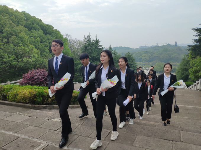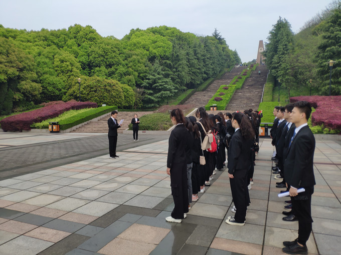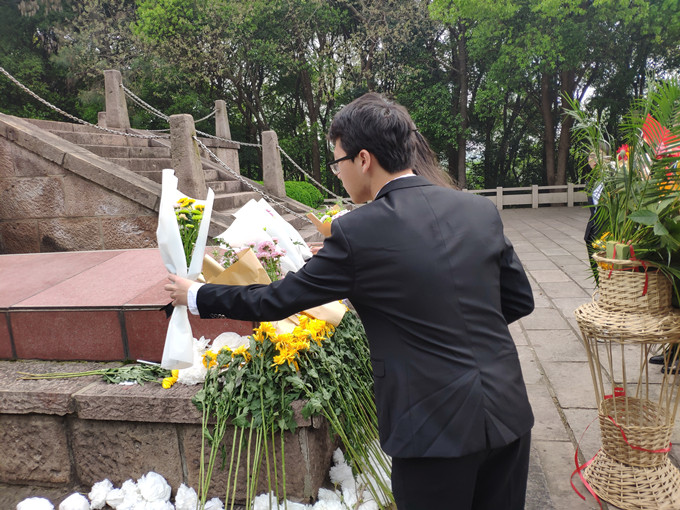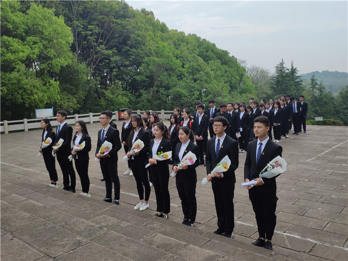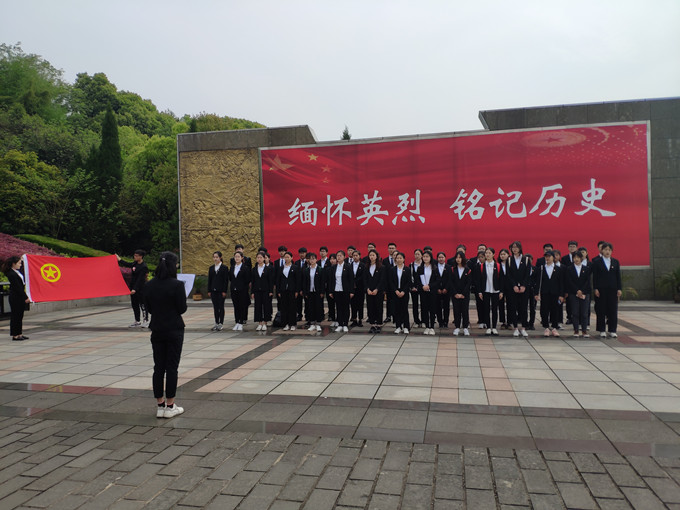 4月13日上午七时许,2018级旅游管理专业全体团员于校花津大礼堂门口集合,同学们整齐划一地身着院服,在相互帮助下认真地佩戴上团徽,手捧鲜花分组列队点名,有序乘车前往烈士陵园,无一人迟到、无一人掉队,为此行奠定了庄严而又神圣的基调。