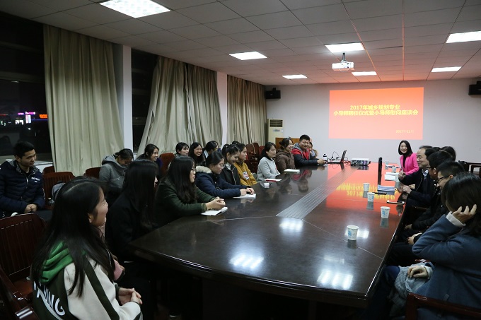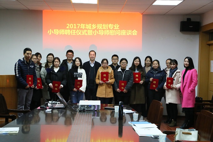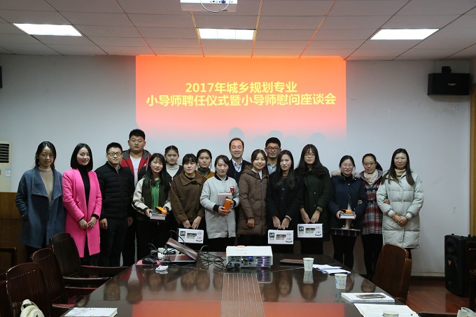 本网讯(国旅 彭媛媛) 为深化学院教育教学和人才培养模式的改革,提高学生专业素质能力和教学质量,更好地发挥朋辈教育的力量,帮助低年级学生尽快适应大学生活。11月30日,365官网举办了2017年城乡规划专业小导师聘任仪式暨慰问座谈会。国旅学院党委副书记乔静、城乡规划专业教师代表、各班级辅导员参加聘任仪式及慰问座谈会,会议由辅导员彭媛媛主持。