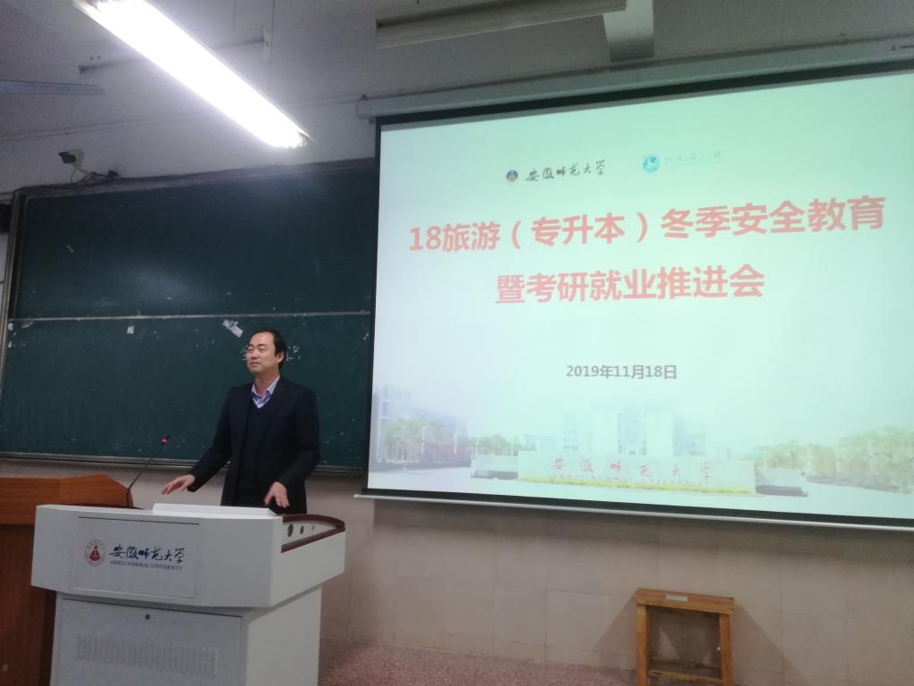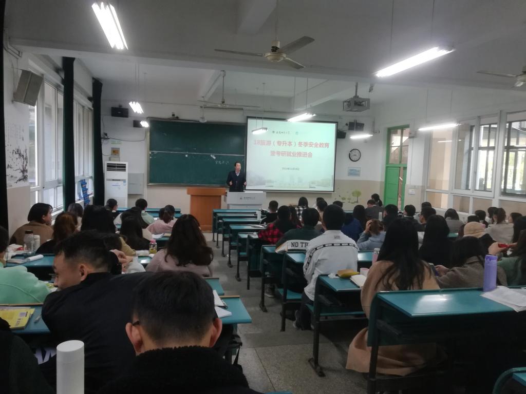 本网讯(bat365中国在线平台官方网站 韩红豆)强化学生安全意识,提高防范能力,消除安全隐患。11月18日下午,2018级旅游管理(专升本)专业在行知楼2040104教室召开主题班会,2018级旅游管理(专升本)专业全体同学参与此次会议,院党委副书记、2018级旅游管理(专升本)兼职辅导员乔静主持。