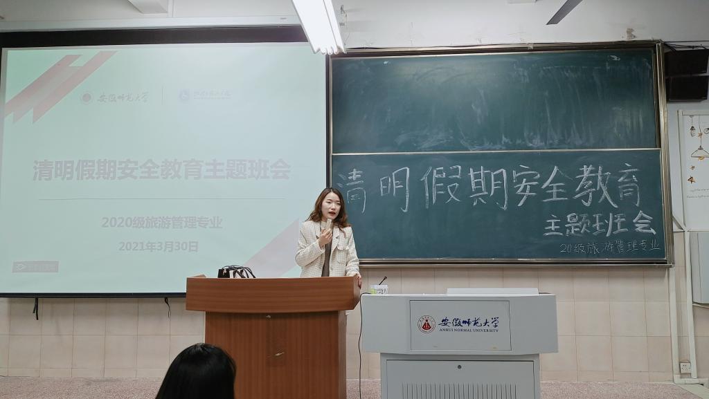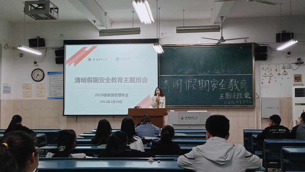 本网讯(bat365中国在线平台官方网站 赵佳慧 李文萍 孙云峰)举安全之盾,防假期之患。为增强学生假期安全意识,加强安全文明校园建设,全面推进疫情防控常态化校园管理和素质教育,构建安全和谐校园,3月30号晚,bat365中国在线平台官方网站2020级旅游管理专业开展了清明节离校安全教育主题班会,会议由2020级旅游管理专业辅导员赵佳慧主持,2020级旅游管理专业全体同学参加了此次班会。