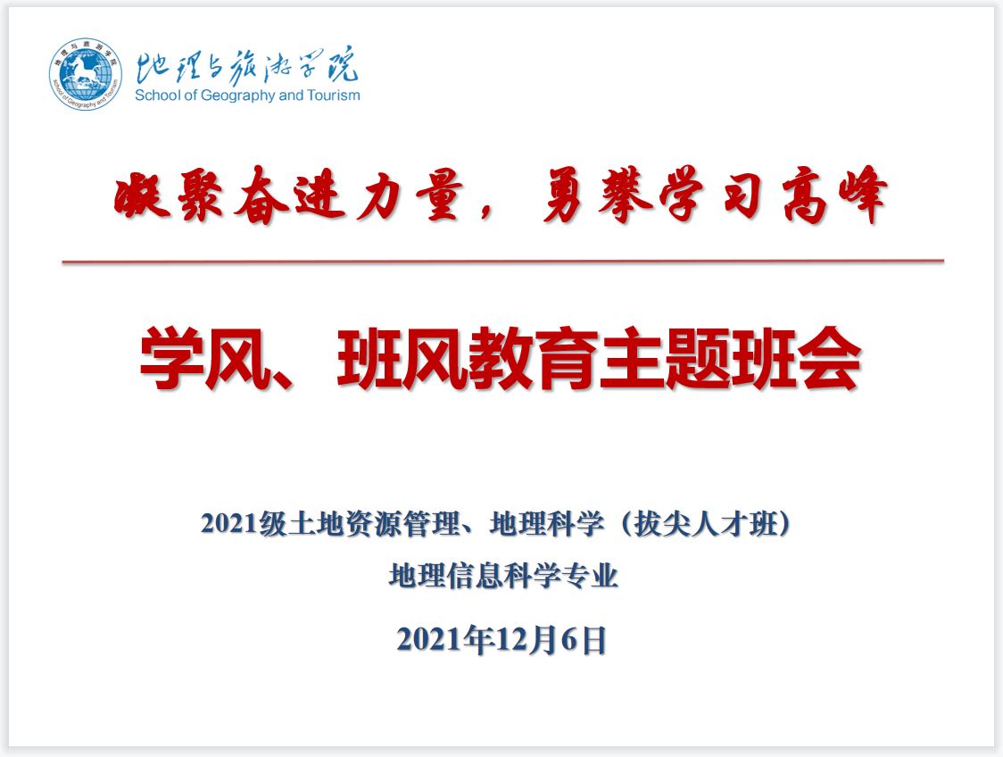 本网讯(bat365中国在线平台官方网站 马思甜)凝聚奋进力量,勇攀学习高峰。“班风”是一个班级体良好风貌的集中展现,“学风”是提高班级综合素质的关键。为了使新生更好更快地融入集体,构建良好的班集体,12月6日晚辅导员吴文涵带领2021级土地资源管理、2021级地理信息科学及2021级地理科学拔尖人才班开展了以“凝聚奋进力量,勇攀学习高峰”为主题班风学风建设主题班会。