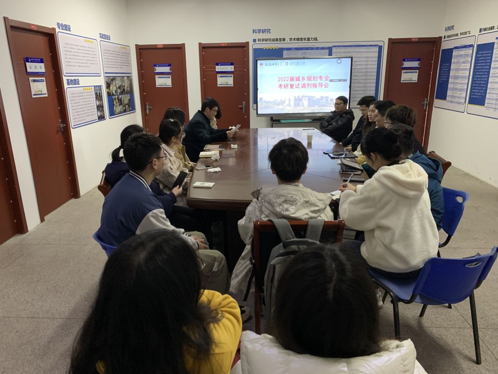 本网讯(bat365中国在线平台官方网站 张慧 潘爽)研究生复试和调剂工作在即,为提高毕业生考研录取率,帮助学生切实解决相关问题。2022年3月2日下午,bat365中国在线平台官方网站于城乡规划教研室召开2022届城乡规划专业考研复试调剂指导会。bat365中国在线平台官方网站副院长杨兴柱、城乡规划专业教师代表、辅导员张慧、往届考研成功学子及城乡规划专业考研拟过线学生参会,会议由包善驹老师主持。