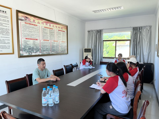 团队首先来到凤凰村村委会。在村委会王书记的介绍下,团队了解到每年的四五月份牡丹花开时为凤凰山景区旅游观光的旺季,人流量每日可达到数万人次。凤凰村的发展主要依托于景区的发展,党的十九大报告提出乡村振兴战略以来,凤凰村就以发展凤凰山旅游景区为乡村振兴的特色核心,坚持将解决“三农”问题作为各项工作重中之重,以推动景区生态文明建设、牡丹的观赏及经济价值为抓手,大力改善生活、生态环境,将实现凤凰村经济增长、农村各农民收入显著提升为目标,深入创新发展、建设安居乐业的美好家园。“凤凰山以后的发展希望可以不光靠牡丹花,希望可以是一年四季都有各种花,”王书记这样提到,发展凤凰山乡村旅游不能受花期掣肘,遇到瓶颈期需积极探讨并采取新的途径,打造凤凰山一年四季都有花可赏就是途径之一。