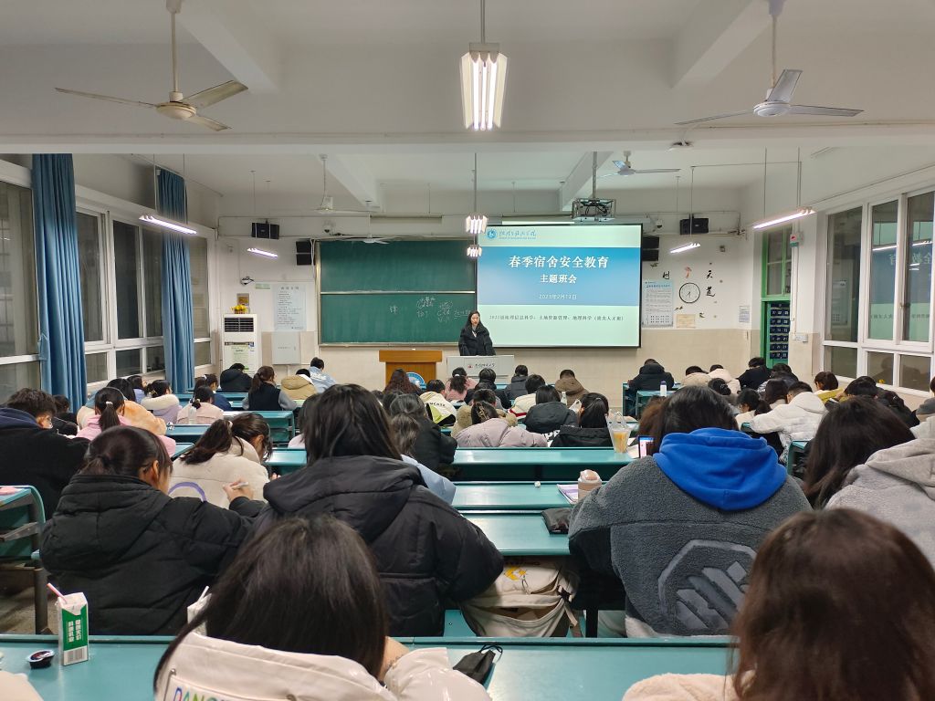 本网讯(bat365中国在线平台官方网站 魏语菲、陈祥云)2月13日晚,2022级地理信息科学、地理科学(拔尖人才班)、土地资源管理分别于教学楼4号楼201、202、302教室举行2022-2023学年春季学期首次线下主题班会暨寝室安全专题教育,全体同学参与此次会议,会议由辅导员陈祥云主持。