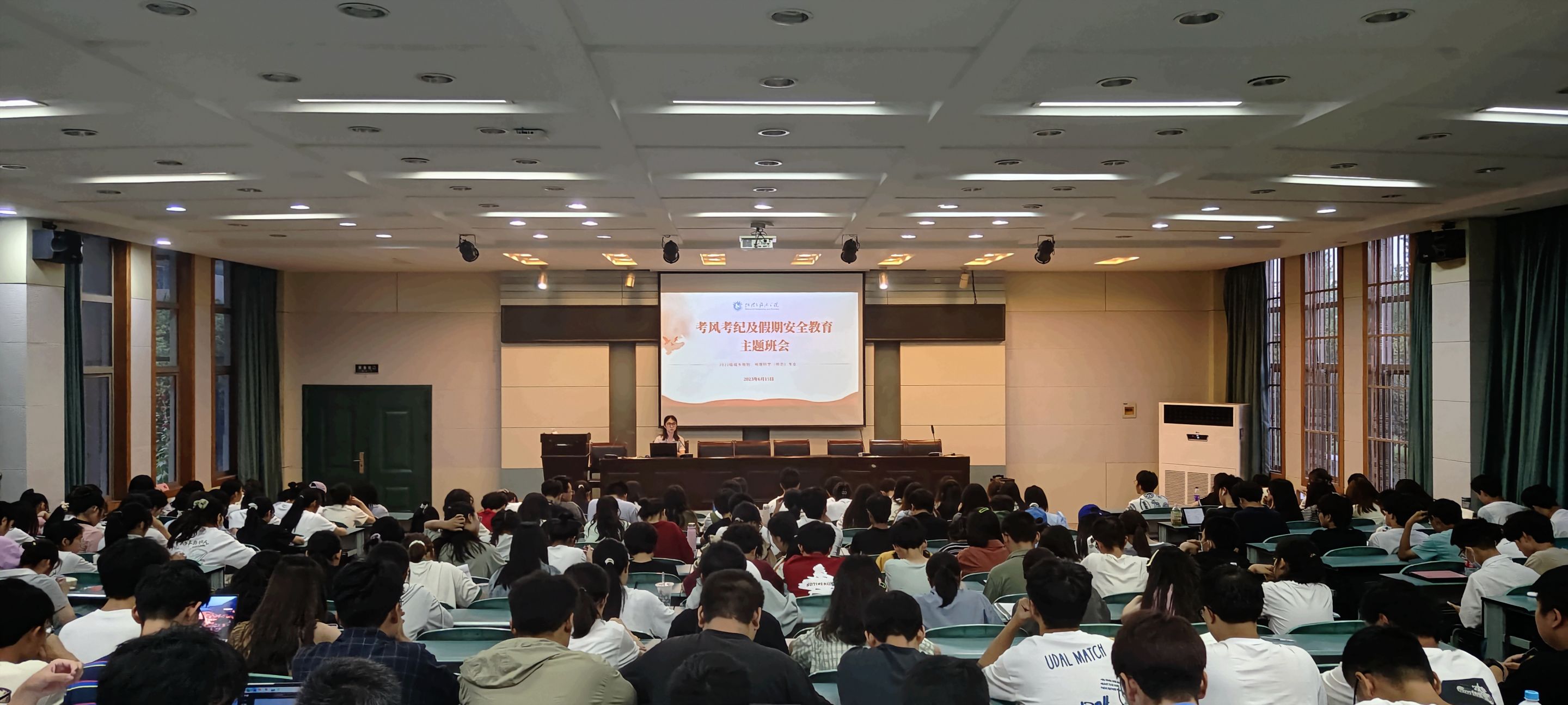 为营造诚信考试的良好氛围、强调期末和假期安全的注意事项,6月15日晚,2022级城乡规划、地理科学(师范)专业在bat365中国在线平台官方网站101报告厅召开考风考纪及假期安全教育主题班会,全体同学参加,班会由辅导员操晶晶主持。