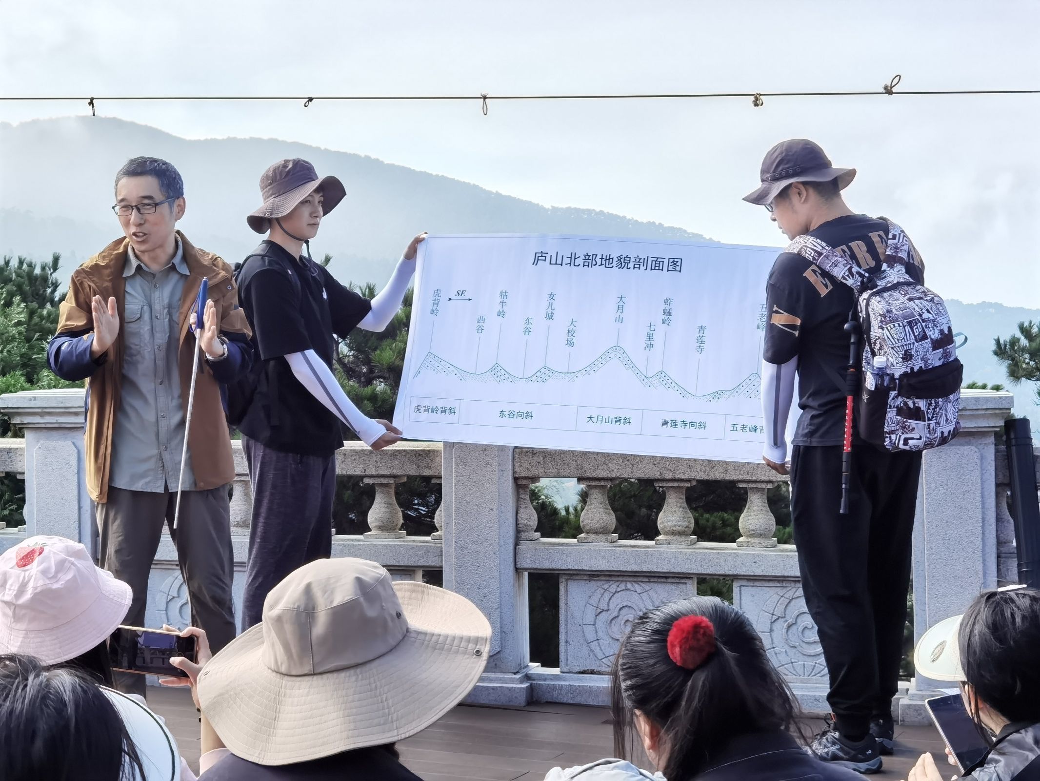 同学们也积极发扬不怕苦不怕累的地理人精神,认真听学、积极实践,系统掌握了庐山地形地貌与成因、水文特征与规律、土壤剖面结构与性质、植被群落特征、气象与环境变化、庐山第四纪冰川学说等知识。
